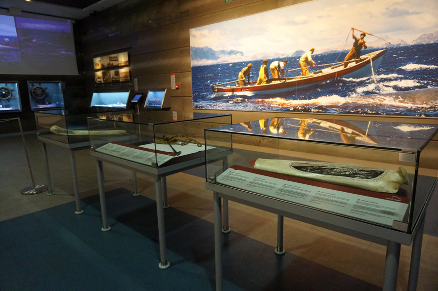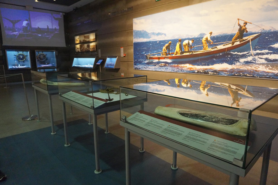 As peças alusivas à baleação remetem para o impacto que a atividade teve no quotidiano das comunidades, no passado, tanto a nível regional como a nível mundial e para a importância de as compreender, no presente, como um contributo para a formação da identidade e salvaguarda do património e da herança cultural.