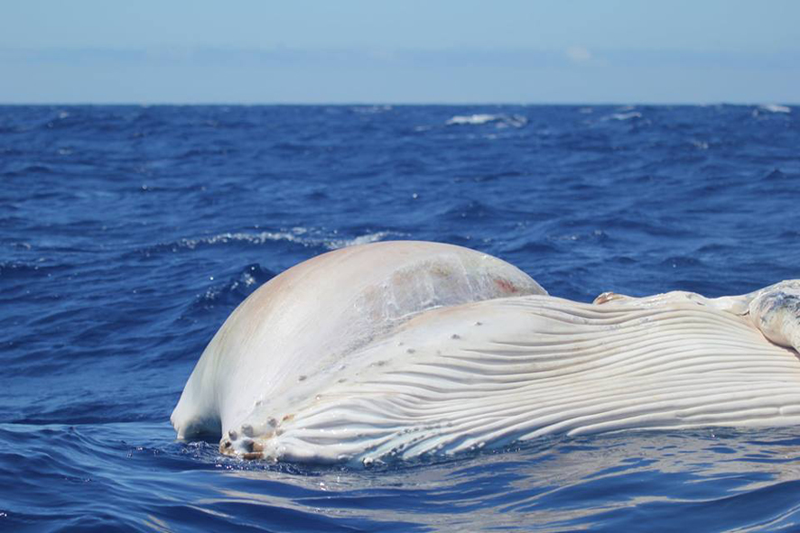 Curiosamente, no dia 12 chegou a informação da existência de um animal arrojado, alegadamente um cachalote com 15 metros. Após algumas falhas de comunicação, a carcaça deste animal foi recuperada e revelou ser uma baleia de bossa (Megaptera novaeangliae) de “apenas” 6 metros, em avançado estado de decomposição. Ainda assim foi possível recolher algumas amostras e recuperar todo o esqueleto para posterior análise.