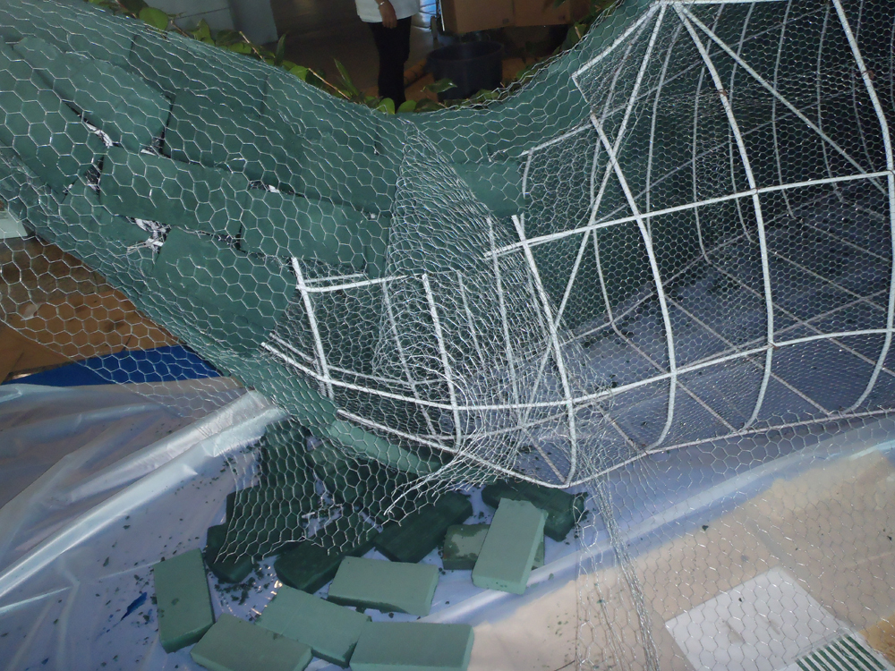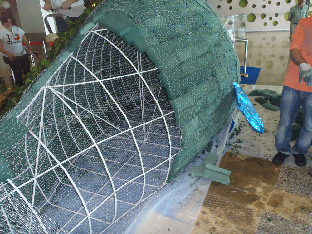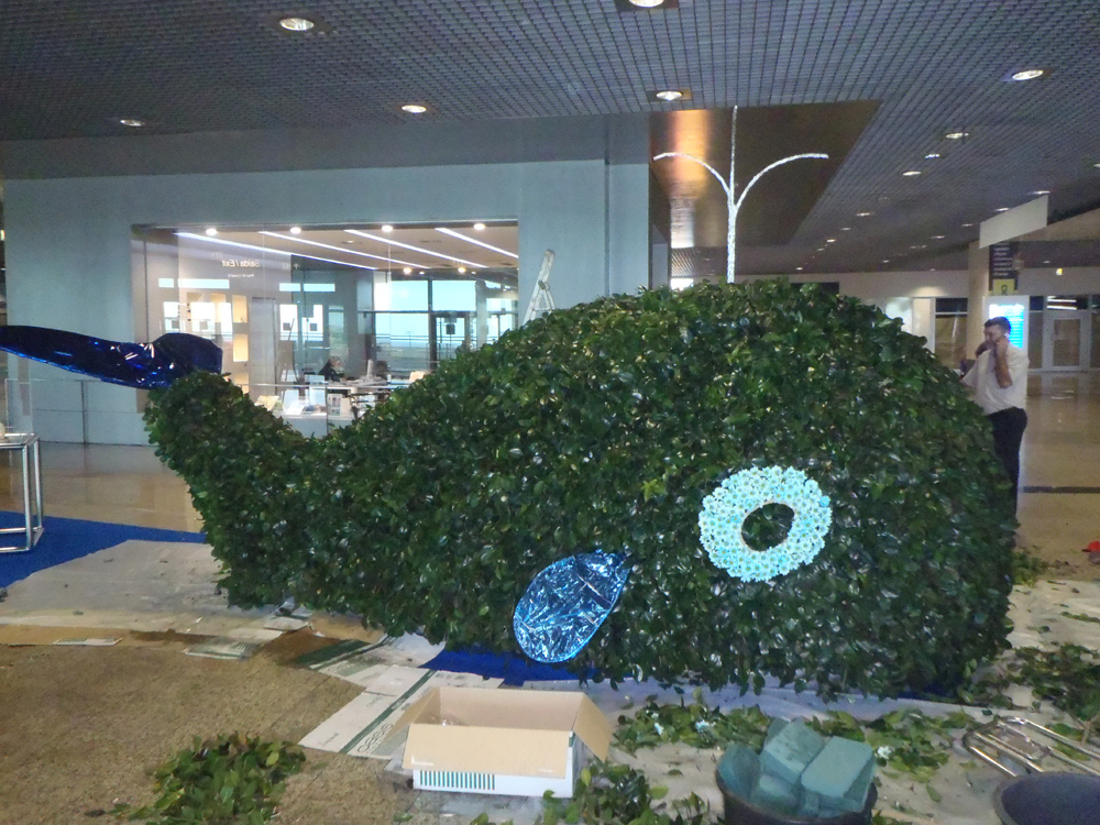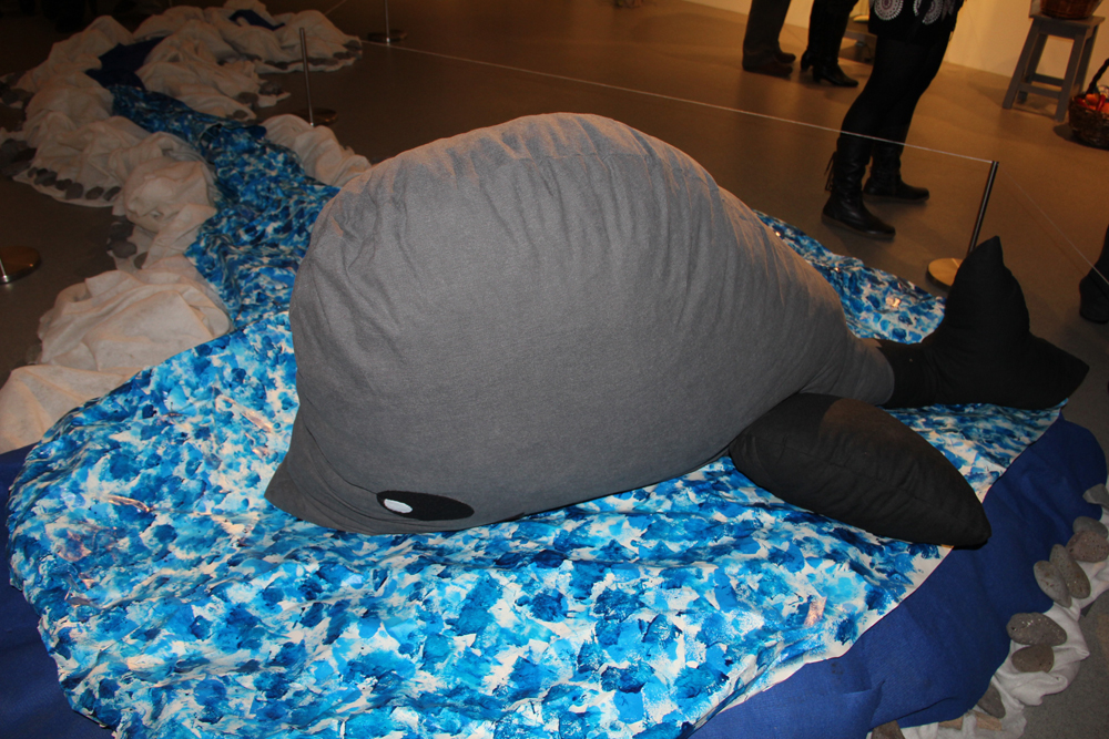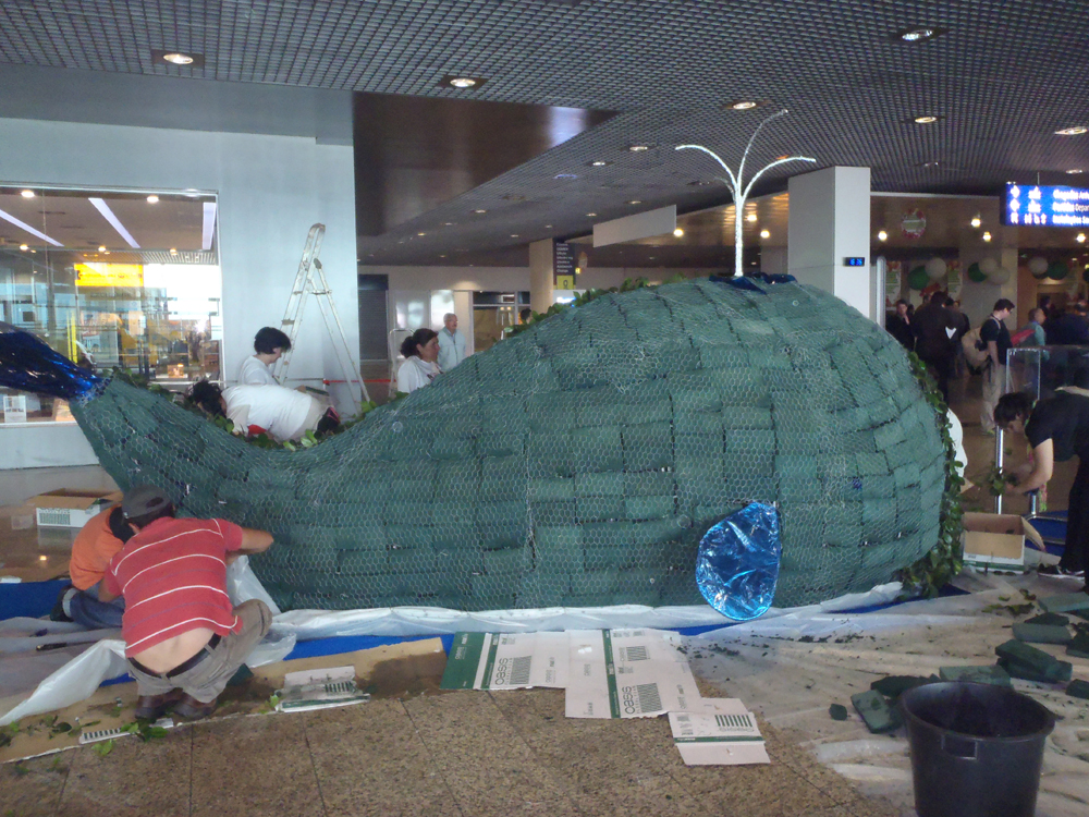 Bearing this information in mind, a three-dimensional whale covered in daisies was created.