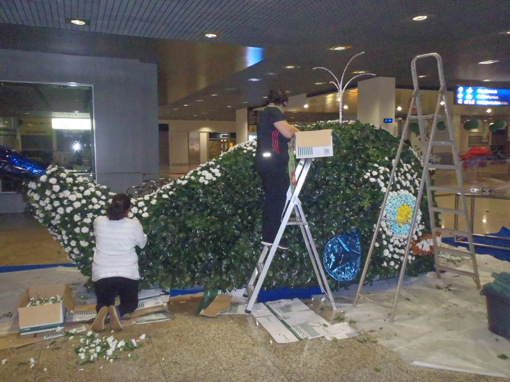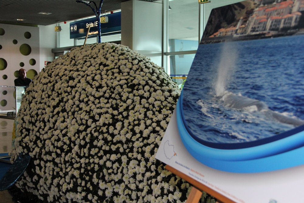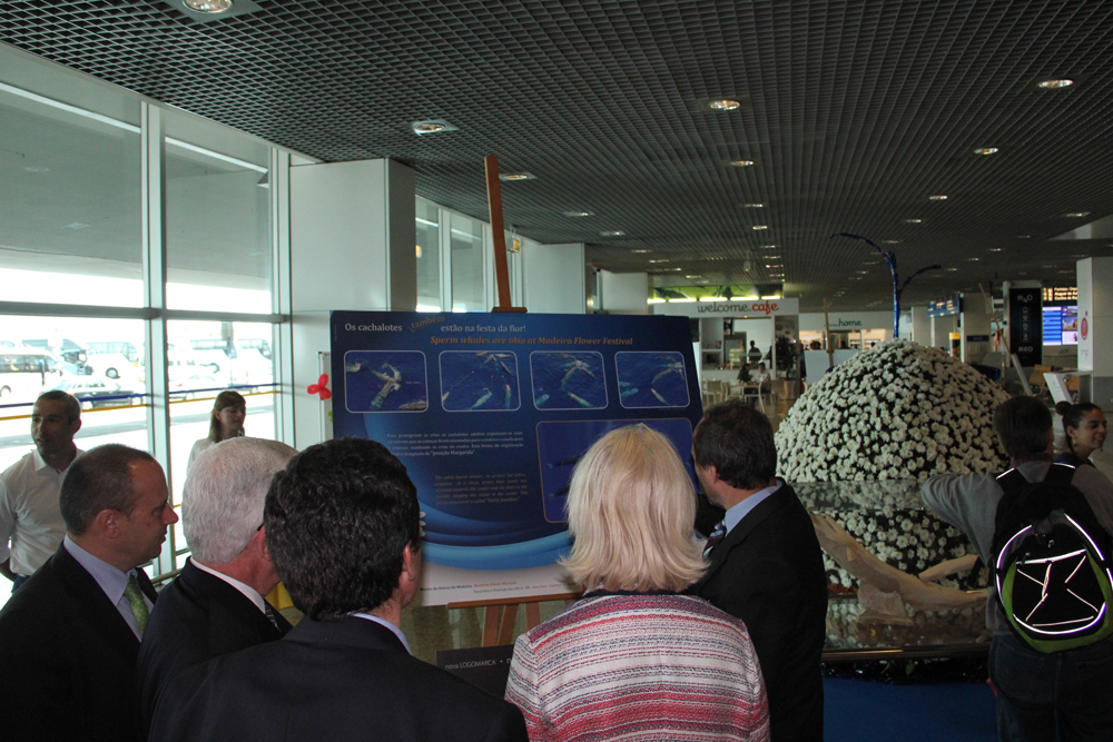 "Sperm Whales and Daisies" was the exhibition that the whale museum designed within the framework of the Flower Festival 2013, this exhibition was held at the airport of Madeira from 3 to 15 May 2013. The exhibition’s name is related to the position that female sperm-females adopt in order to protect their calves. To protect their calves adult sperm whales organize themselves in a circle in which the heads are directed to the center and the tail to the outside, keeping the calves in the centre. This form of social organization is designated "daisy position".