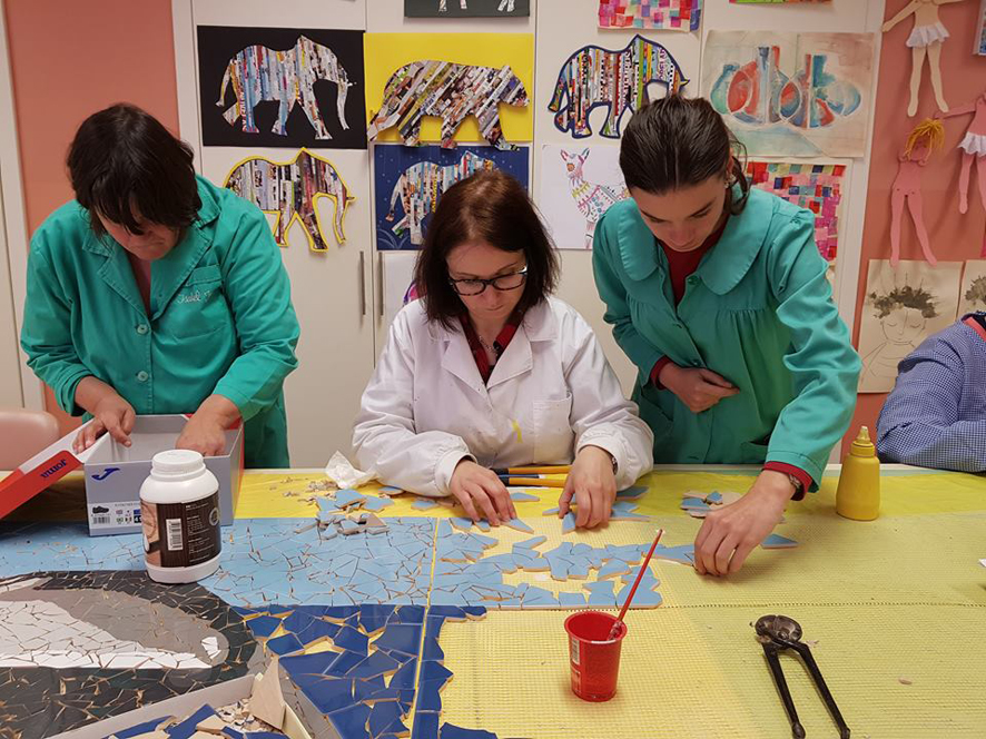 Foi proposto às instituições participantes a realização de um painel em mosaico de azulejo, através da reprodução de uma imagem, para posterior integração num mural.