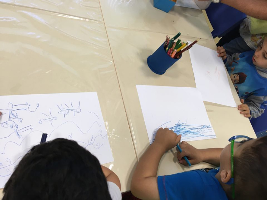 b) Realização de uma atividade mensal, conto infantil e trabalho de expressão plástica, com os alunos da sala vermelha, sendo a temática a “Biodiversidade Marinha”.
